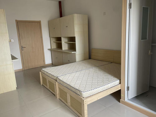 目前有白領(lǐng)公寓(一室一廳、兩室一廳),藍領(lǐng)公寓(獨衛(wèi)雙人間、獨衛(wèi)6人間、普通6人間)對外招租。