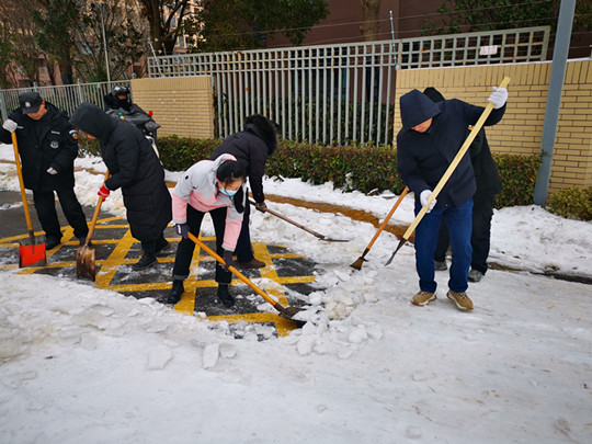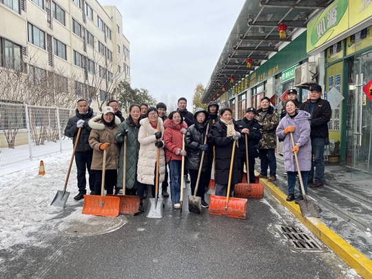 一場(chǎng)大雪,把蘇宿園區(qū)裝點(diǎn)得銀裝素裹,卻給群眾出行帶來了很大不便。為保證居民安全出行,建發(fā)公司全體職工參與園區(qū)及各物業(yè)項(xiàng)目道路掃雪除冰工作,奏響全員鏟冰除雪“進(jìn)行曲”。