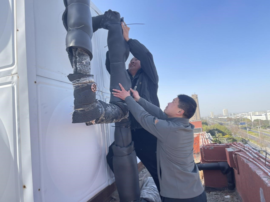 與此同時,常年佇立的戶外設施也紛紛披上量身定制的“保溫外衣”。工作人員采用專用保溫材料,對這些設施進行嚴密封裹與加固,確保在嚴寒天氣中仍能正常運行,有效防范因凍脹、凍裂引發(fā)的供水中斷或消防安全隱患。