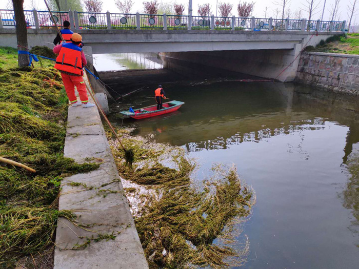 隨著天氣溫度逐漸升高,園區(qū)利民河、蔡莊大溝等河道水草大面積繁殖,為了營造良好的水環(huán)境,扎實做好水面保潔工作,打造“水清、岸綠、河暢”的水生態(tài)環(huán)境,近期,建發(fā)公司組織環(huán)衛(wèi)隊伍集中開展河道水草打撈。